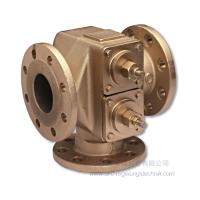 AKO温控阀内部配有容易更换的充蜡阀芯,阀芯的个数取决于温控阀的公称通径。该阀芯通过吸收周围介质的温度,随即开始膨胀,改变自身长度(阀门行程),从而改变阀门路径。AKO温控阀不需要任何辅助能源,随着温度上升,超过了该温控阀的开启温度,阀门内部的管状滑块随即被从阀座上提起,路径A到C的通道打开,与此同时,路径A到B的通道被同比例关闭。通道的开闭变化与流经温控阀介质的温度变化成比例。